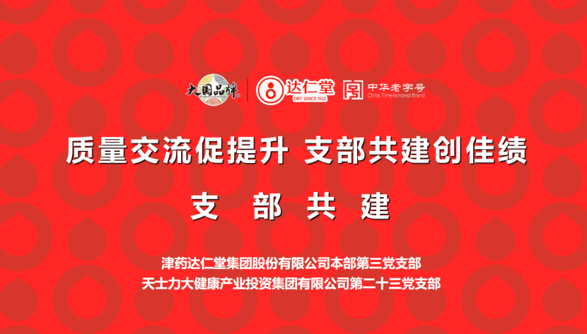 为进一步加强基层党组织建设,充分发挥党组织引领和凝聚作用,推动党建活动与企业发展深度融合,津药达仁堂集团股份有限公司本部第三党支部与天士力大健康产业投资集团有限公司第二十三党支部于7月23日开展了支部共建活动。