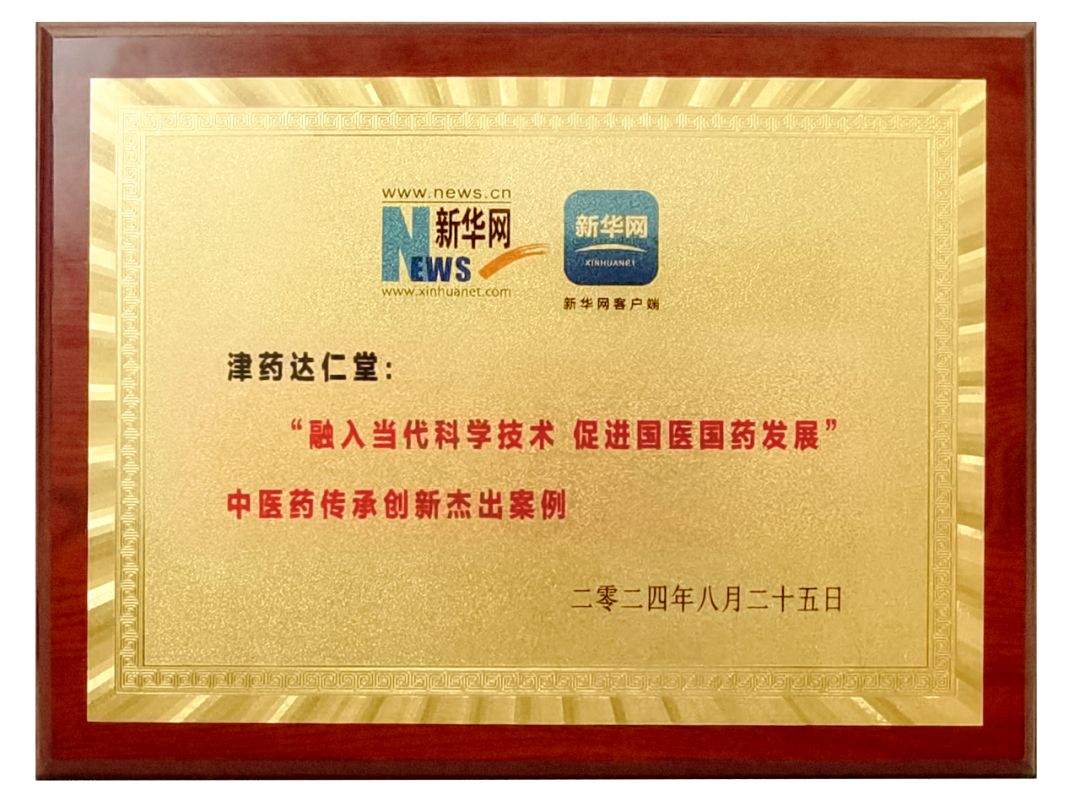 在启动仪式上,津药达仁堂凭借其在中医药领域的深厚底蕴与创新实践,荣获新华网“融入当代科学技术 促进国医国药发展”中医药传承创新杰出案例。