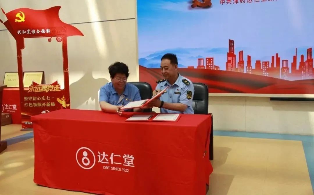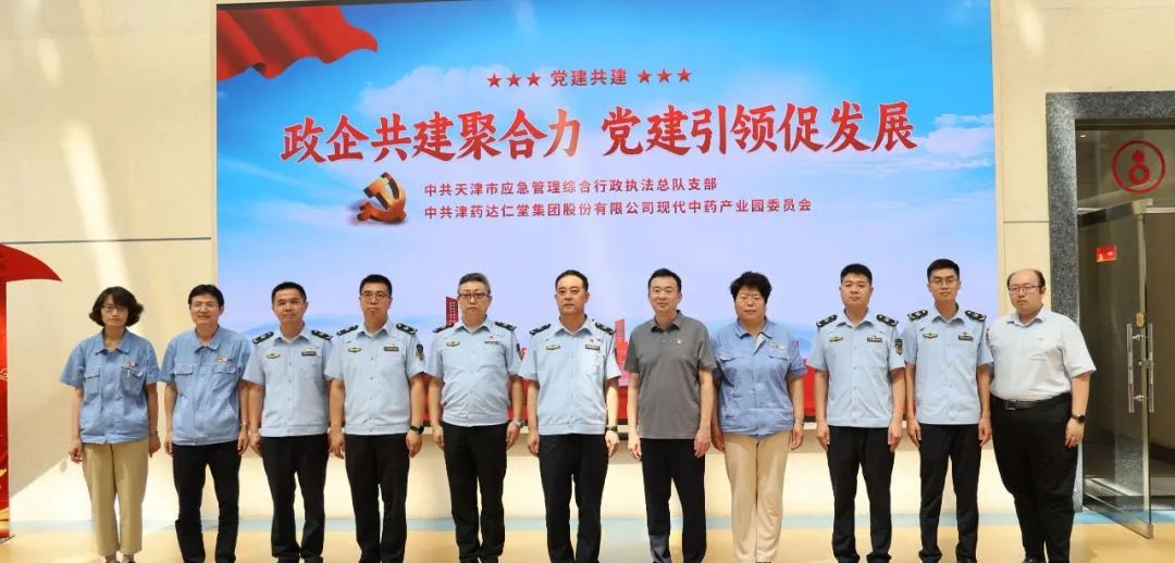 市应急管理综合行政执法总队李森副总队长、津药达仁堂集团股份有限公司首席制造官张宇为结对党组织代表授牌,并举行党建共建启动仪式,共同见证这一庄严时刻。